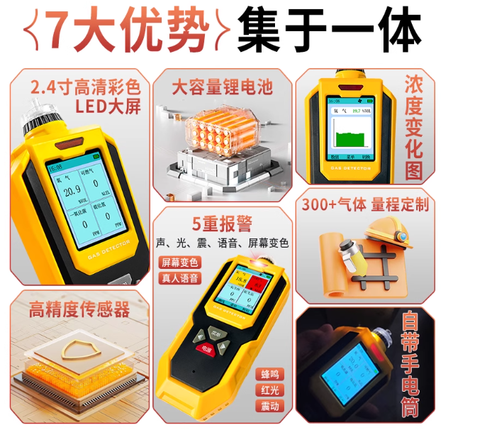 泵吸式四合一气体检测仪可燃氧气一氧化碳硫化氢有毒浓度报警器
